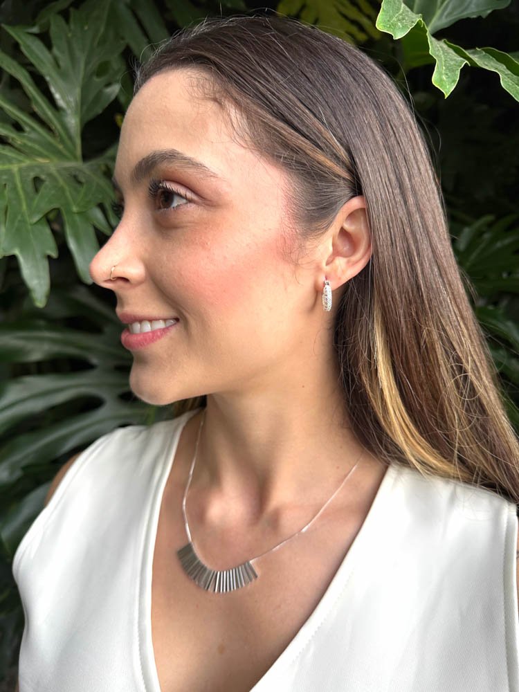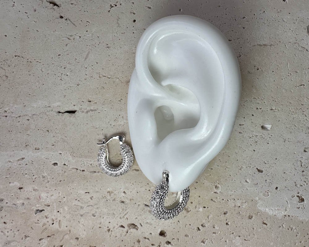 Candongas plateadas con incrustaciones brillantes, sofisticadas y versátiles.