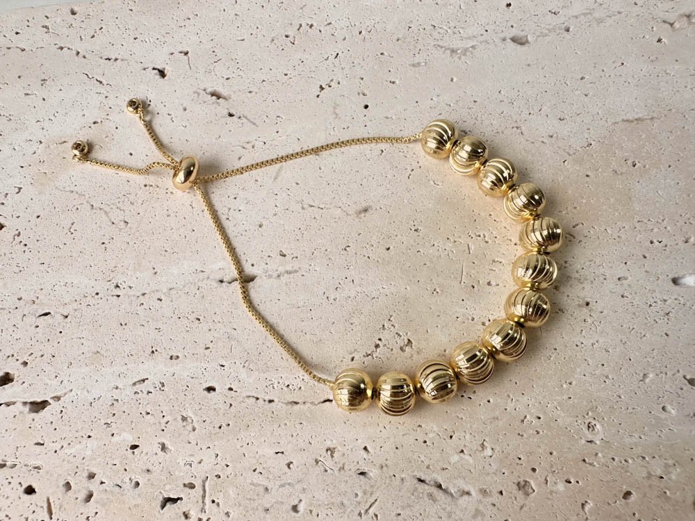 Pulsera de cadena ajustable con balines texturizados en rodio dorado.