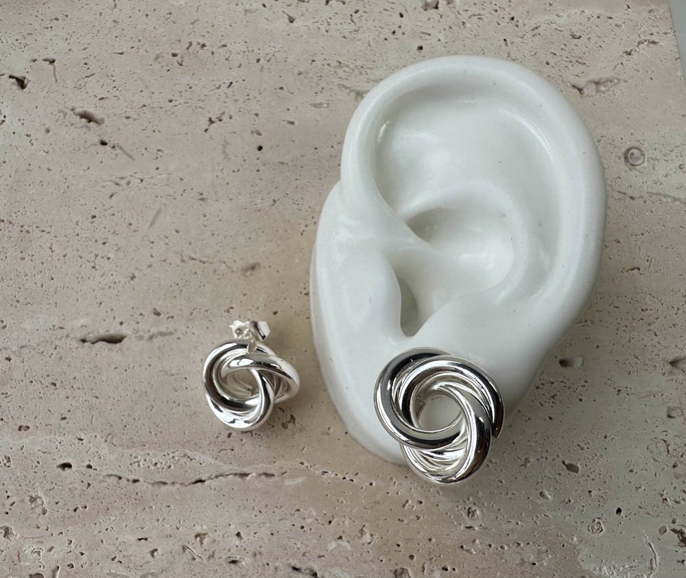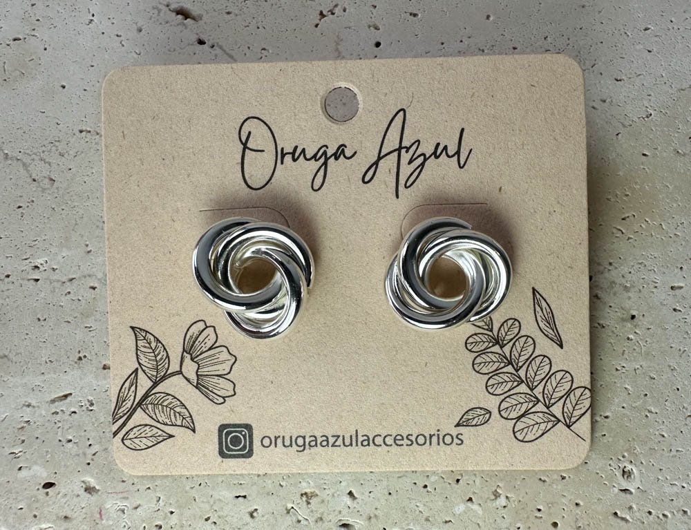 Los Topos Espiral destacan por su diseño entrelazado que crea una forma de espiral armoniosa y sofisticada. Con un acabado en tono plateado brillante, son el accesorio ideal para quienes buscan un estilo moderno y versátil, fácil de combinar con diferentes looks, desde lo casual hasta lo más formal.