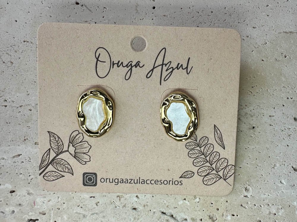 Los topos Nácar destacan por su diseño elegante que combina la luminosidad del nácar con un contorno irregular en rodio dorado. Con un tamaño aproximado de 2 cm, son delicados y fáciles de llevar, perfectos para añadir un detalle sofisticado al día a día.